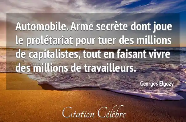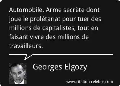 Automobile. Arme secrète dont joue le prolétariat pour tuer des millions de capitalistes, tout en faisant vivre des millions de travailleurs.