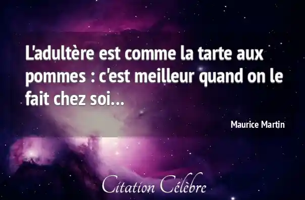 L'adultère est comme la tarte aux pommes : c'est meilleur quand on le fait chez soi...