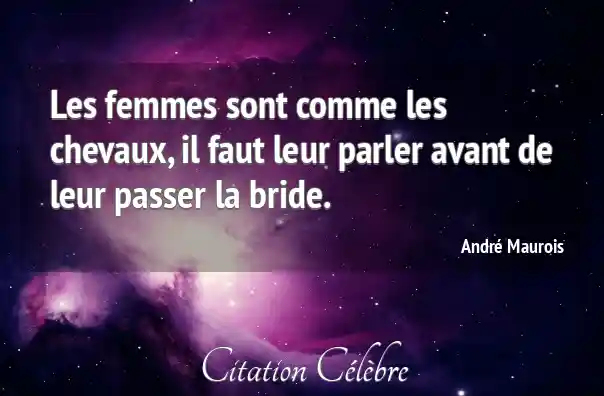 Les femmes sont comme les chevaux, il faut leur parler avant de leur passer la bride.