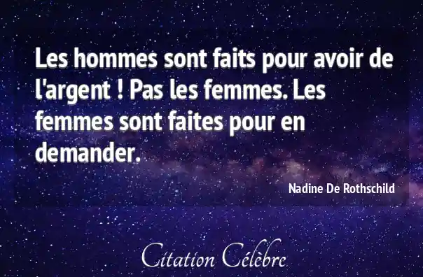 Les hommes sont faits pour avoir de l'argent ! Pas les femmes. Les femmes sont faites pour en demander.