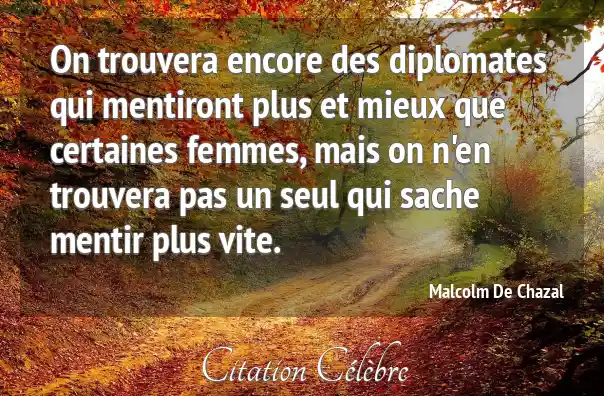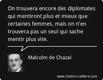 On trouvera encore des diplomates qui mentiront plus et mieux que certaines femmes, mais on n'en trouvera pas un seul qui sache mentir plus vite.