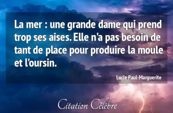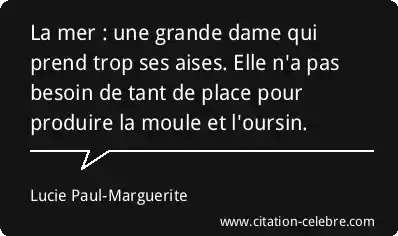La mer : une grande dame qui prend trop ses aises. Elle n'a pas besoin de tant de place pour produire la moule et l'oursin.