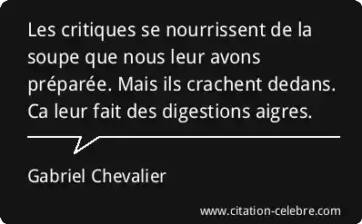 Les critiques se nourrissent de la soupe que nous leur avons préparée. Mais ils crachent dedans. Ca leur fait des digestions aigres.