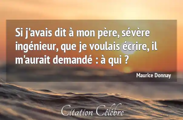 Si j'avais dit à mon père, sévère ingénieur, que je voulais écrire, il m'aurait demandé : à qui ?