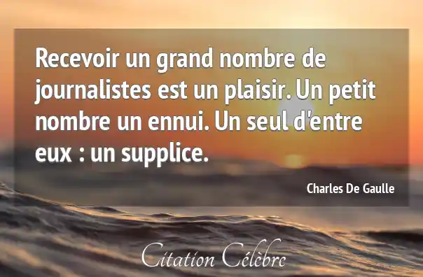 Recevoir un grand nombre de journalistes est un plaisir. Un petit nombre un ennui. Un seul d'entre eux : un supplice.