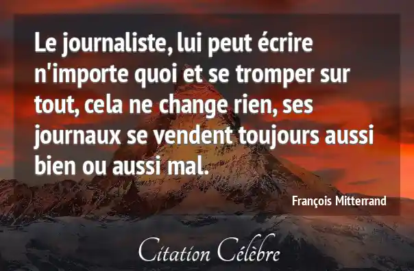 Le journaliste, lui peut écrire n'importe quoi et se tromper sur tout, cela ne change rien, ses journaux se vendent toujours aussi bien ou aussi mal.