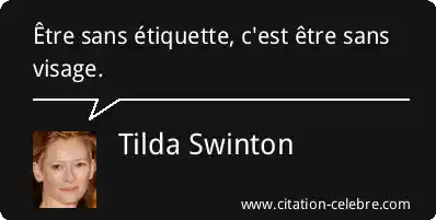 Citation Tilda Swinton visage : Être sans étiquette, c'est être sans visage....