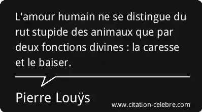 L'amour humain ne se distingue du rut stupide des animaux que par deux fonctions divines : la caresse et le baiser.