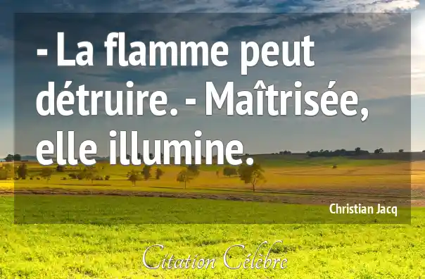 - La flamme peut détruire. - Maîtrisée, elle illumine.