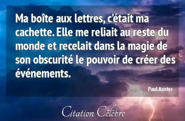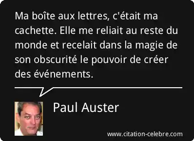 Ma boîte aux lettres, c'était ma cachette. Elle me reliait au reste du monde et recelait dans la magie de son obscurité le pouvoir de créer des événements.