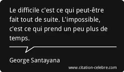 Le difficile c'est ce qui peut-être fait tout de suite. L'impossible, c'est ce qui prend un peu plus de temps.