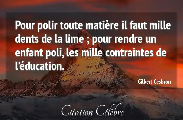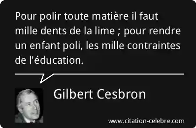Pour polir toute matière il faut mille dents de la lime ; pour rendre un enfant poli, les mille contraintes de l'éducation.