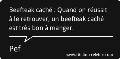 Beefteak caché : Quand on réussit à le retrouver, un beefteak caché est très bon à manger.