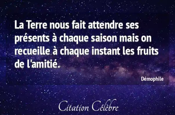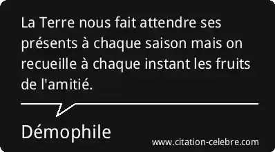 La Terre nous fait attendre ses présents à chaque saison mais on recueille à chaque instant les fruits de l'amitié.