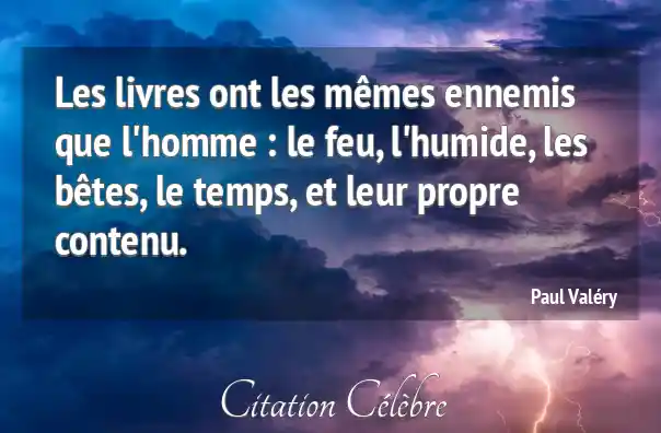 Les livres ont les mêmes ennemis que l'homme : le feu, l'humide, les bêtes, le temps, et leur propre contenu.