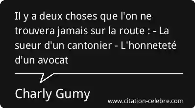 Il y a deux choses que l'on ne trouvera jamais sur la route : - La sueur d'un cantonier - L'honneteté d'un avocat