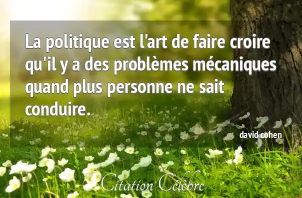 La politique est l'art de faire croire qu'il y a des problèmes mécaniques quand plus personne ne sait conduire.