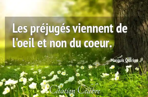 Les préjugés viennent de l'oeil et non du coeur.
