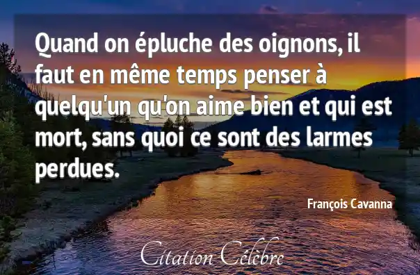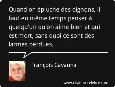 Quand on épluche des oignons, il faut en même temps penser à quelqu'un qu'on aime bien et qui est mort, sans quoi ce sont des larmes perdues.