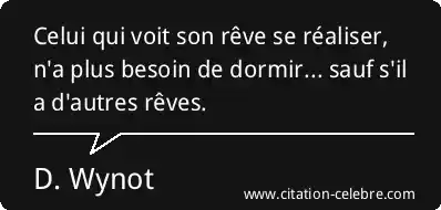 Celui qui voit son rêve se réaliser, n'a plus besoin de dormir... sauf s'il a d'autres rêves.