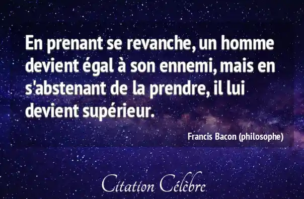 En prenant se revanche, un homme devient égal à son ennemi, mais en s'abstenant de la prendre, il lui devient supérieur.