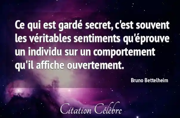 Ce qui est gardé secret, c'est souvent les véritables sentiments qu'éprouve un individu sur un comportement qu'il affiche ouvertement.