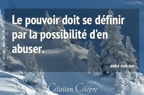 Citation André Malraux pouvoir : Le pouvoir doit se définir par la possibilité d'en abuser....