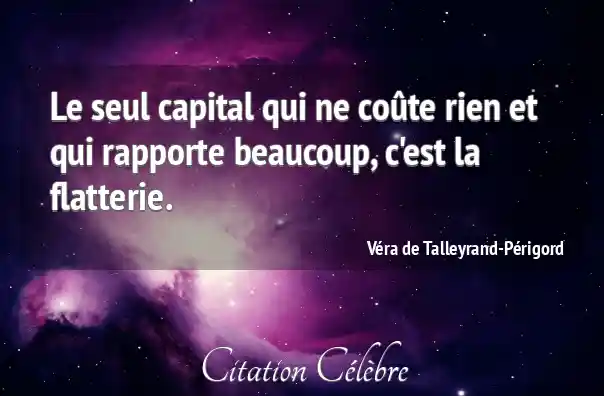 Le seul capital qui ne coûte rien et qui rapporte beaucoup, c'est la flatterie.