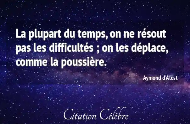 La plupart du temps, on ne résout pas les difficultés ; on les déplace, comme la poussière.