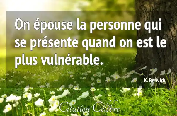 On épouse la personne qui se présente quand on est le plus vulnérable.