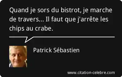 Quand je sors du bistrot, je marche de travers... Il faut que j'arrête les chips au crabe.