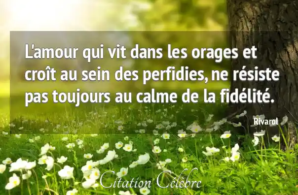L'amour qui vit dans les orages et croît au sein des perfidies, ne résiste pas toujours au calme de la fidélité.