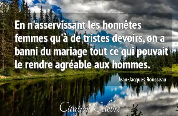 En n'asservissant les honnêtes femmes qu'à de tristes devoirs, on a banni du mariage tout ce qui pouvait le rendre agréable aux hommes.