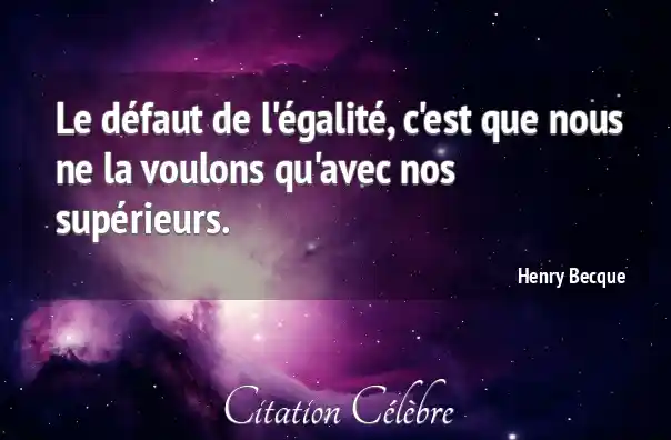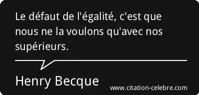 Le défaut de l'égalité, c'est que nous ne la voulons qu'avec nos supérieurs.
