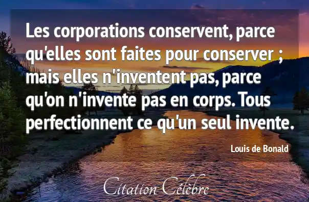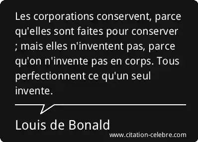 Les corporations conservent, parce qu'elles sont faites pour conserver ; mais elles n'inventent pas, parce qu'on n'invente pas en corps. Tous perfectionnent ce qu'un seul invente.