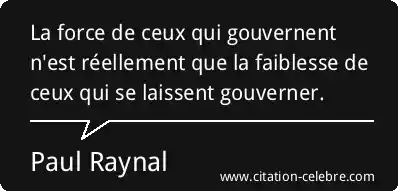 La force de ceux qui gouvernent n'est réellement que la faiblesse de ceux qui se laissent gouverner.