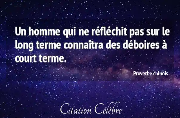 Un homme qui ne réfléchit pas sur le long terme connaîtra des déboires à court terme.