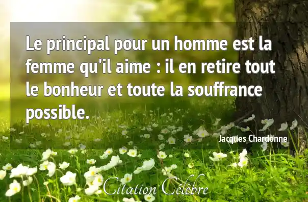 Le principal pour un homme est la femme qu'il aime : il en retire tout le bonheur et toute la souffrance possible.