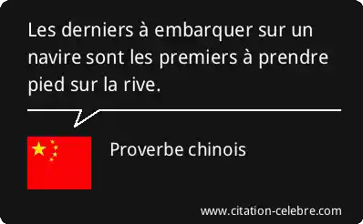 Proverbe  Chinois Navire : Les derniers à embarquer sur un navire sont les premiers...
