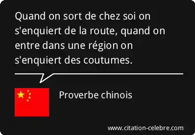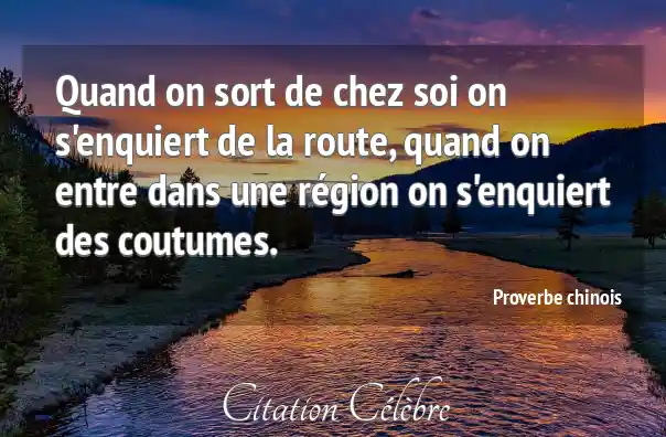 Quand on sort de chez soi on s'enquiert de la route, quand on entre dans une région on s'enquiert des coutumes.