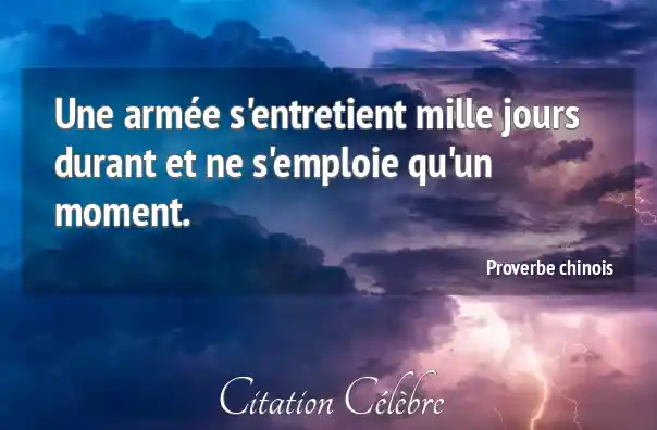 Une armée s'entretient mille jours durant et ne s'emploie qu'un moment.