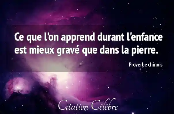 Ce que l'on apprend durant l'enfance est mieux gravé que dans la pierre.