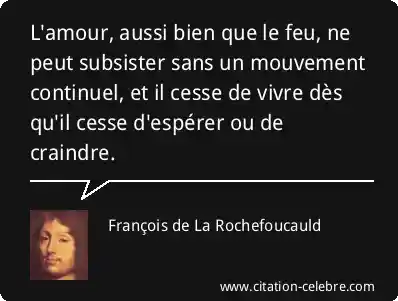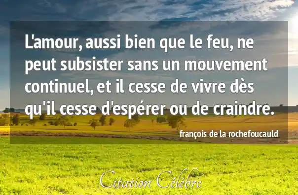 L'amour, aussi bien que le feu, ne peut subsister sans un mouvement continuel, et il cesse de vivre dès qu'il cesse d'espérer ou de craindre.