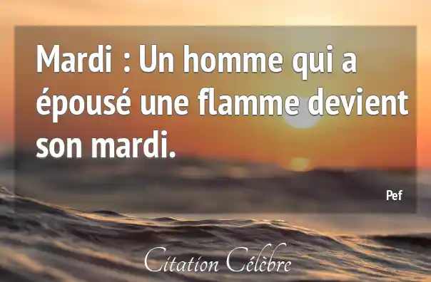 Mardi : Un homme qui a épousé une flamme devient son mardi.