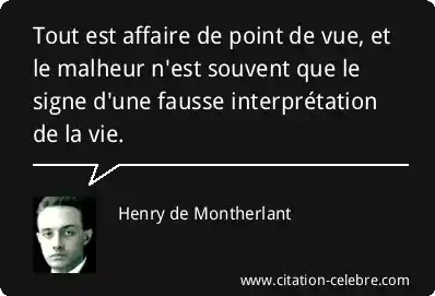 Tout est affaire de point de vue, et le malheur n'est souvent que le signe d'une fausse interprétation de la vie.
