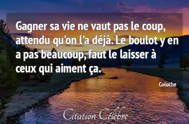 Gagner sa vie ne vaut pas le coup, attendu qu'on l'a déjà. Le boulot y en a pas beaucoup, faut le laisser à ceux qui aiment ça.