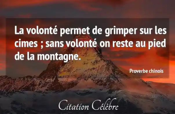 La volonté permet de grimper sur les cimes ; sans volonté on reste au pied de la montagne.