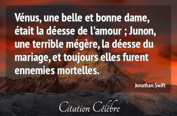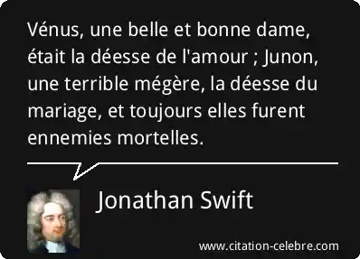 Vénus, une belle et bonne dame, était la déesse de l'amour ; Junon, une terrible mégère, la déesse du mariage, et toujours elles furent ennemies mortelles.