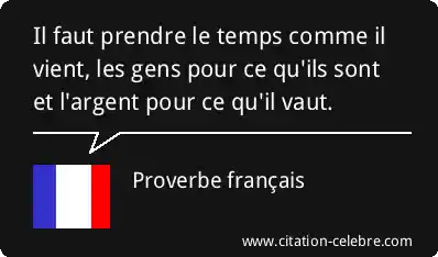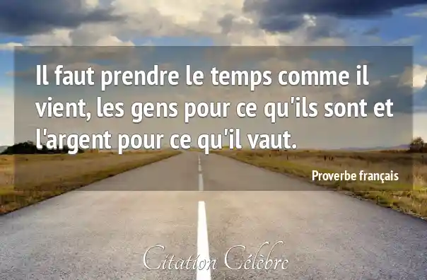 Il faut prendre le temps comme il vient, les gens pour ce qu'ils sont et l'argent pour ce qu'il vaut.