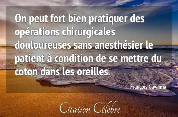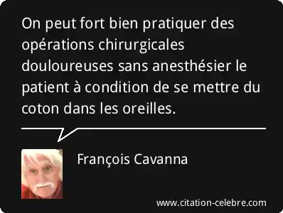 On peut fort bien pratiquer des opérations chirurgicales douloureuses sans anesthésier le patient à condition de se mettre du coton dans les oreilles.
